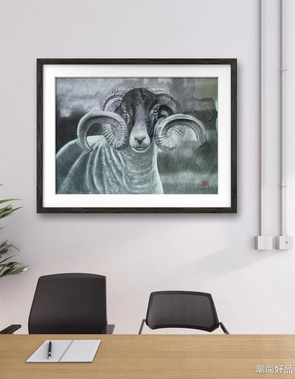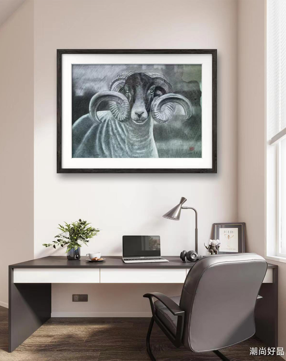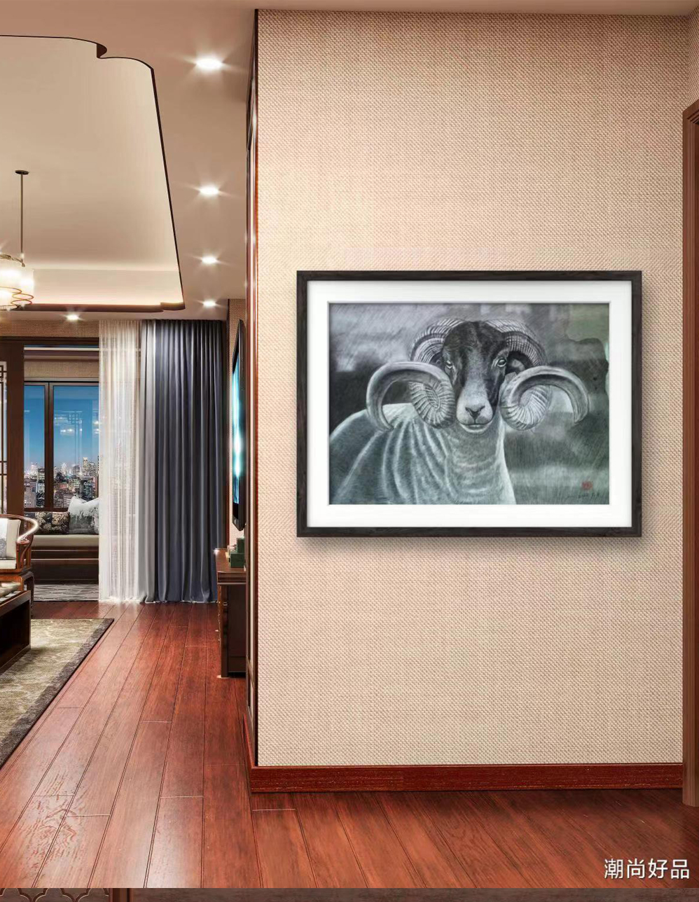 动物素描_羊,此作品已装裱,因运输需要打木框,需要打包费。