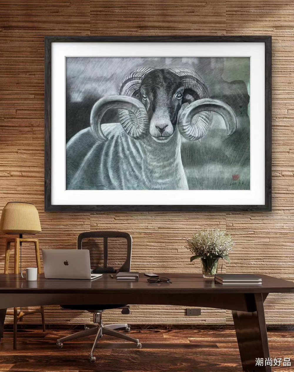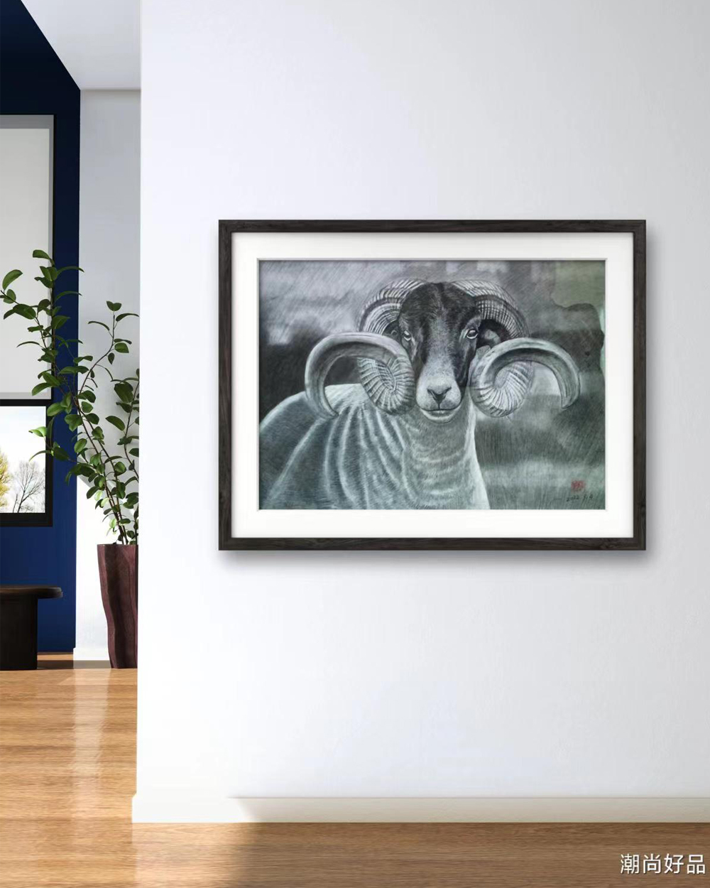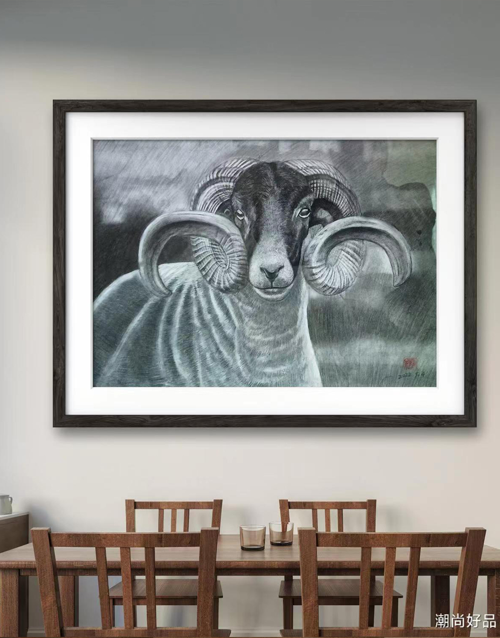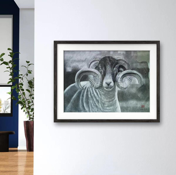动物素描_羊,此作品已装裱,因运输需要打木框,需要打包费。