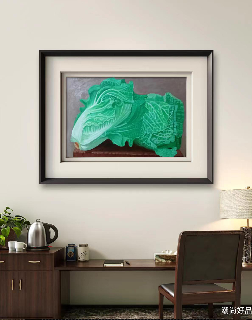 静物油画_白菜,此作品未装裱,若需装裱请下单说明,需收取装裱费用,发货时间为72小时之内。另外凡是需要装裱的需要收取邮费打包费用。支持预售!(发 货时间为7天后)。