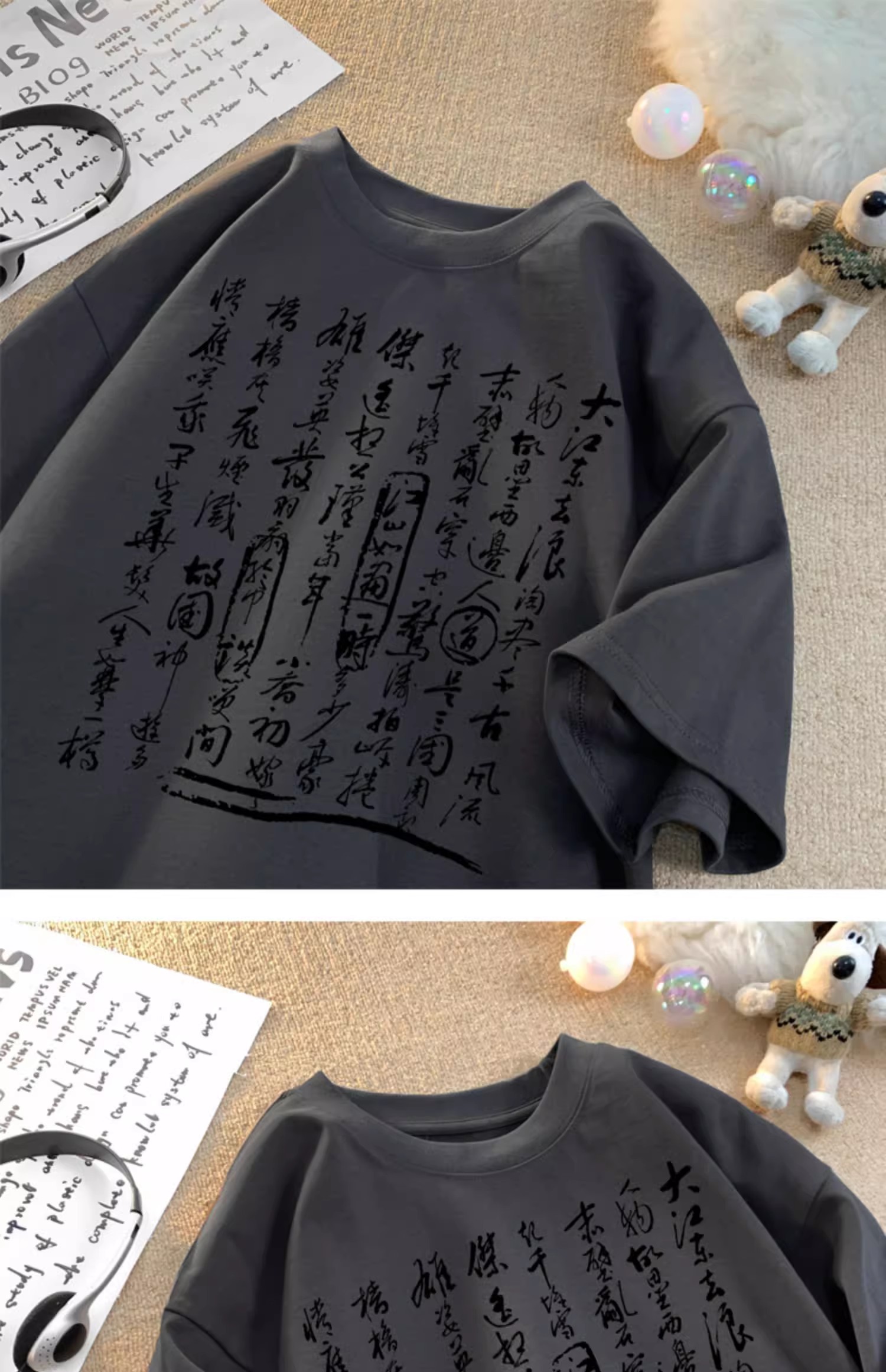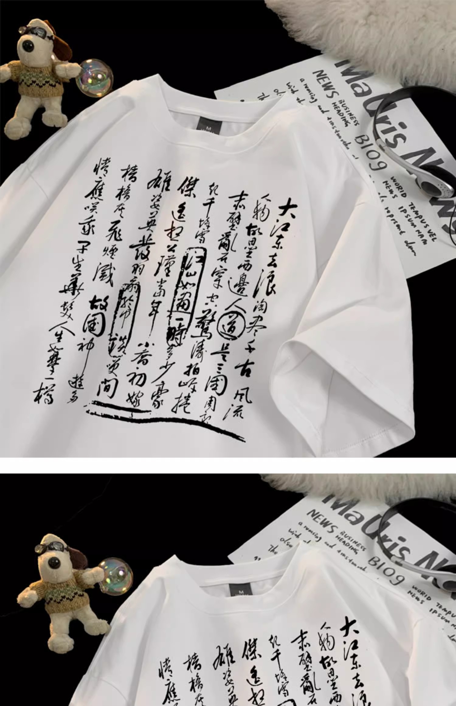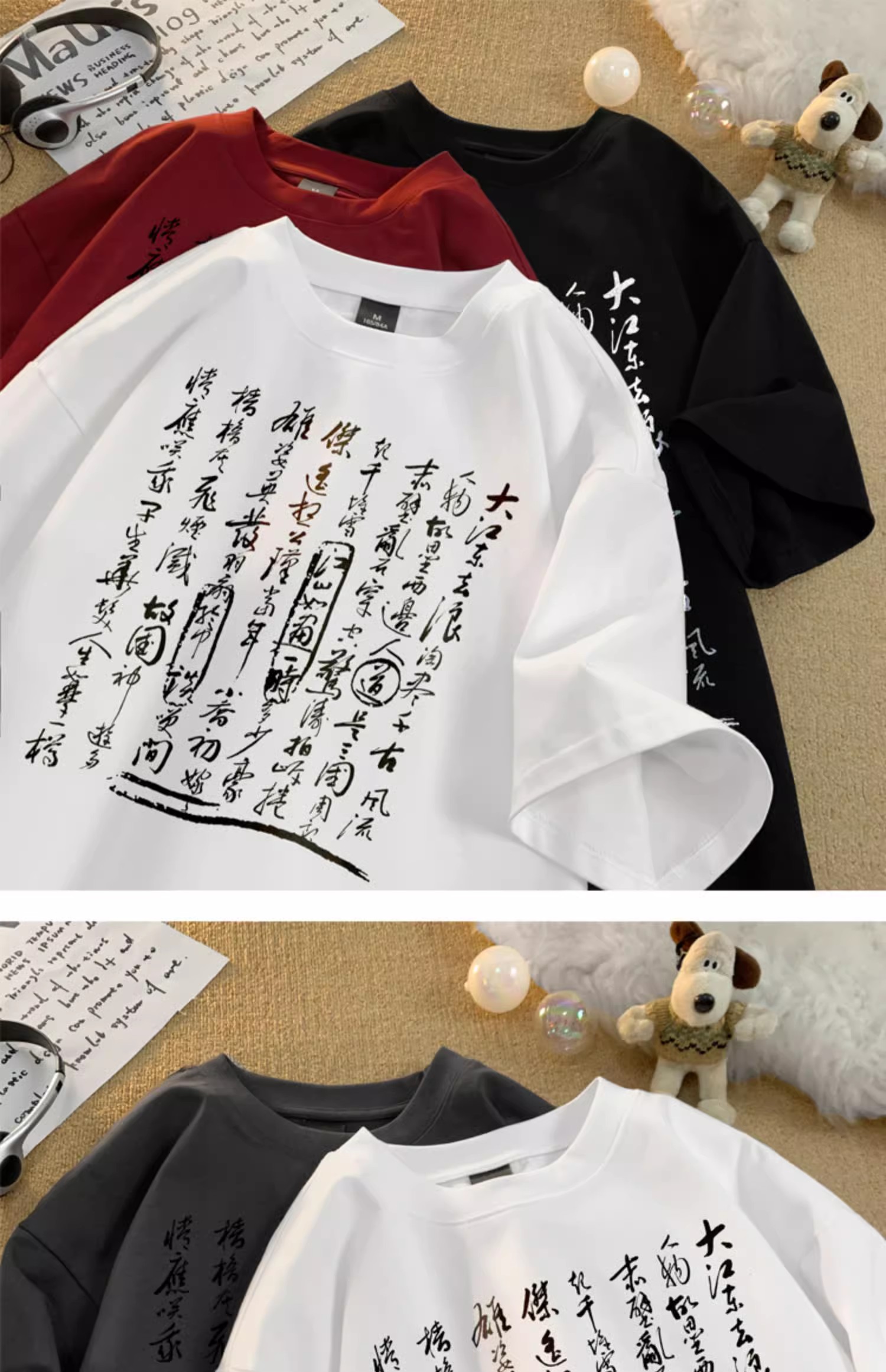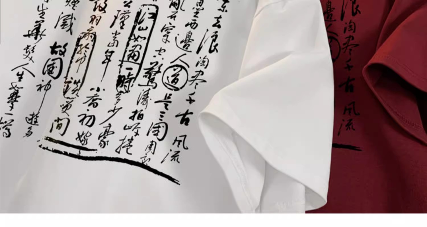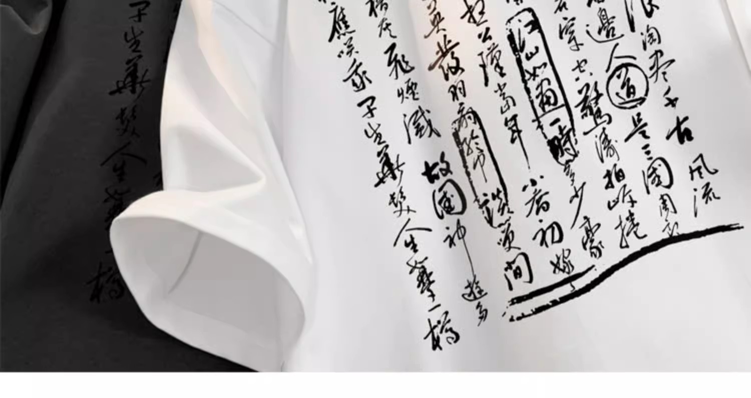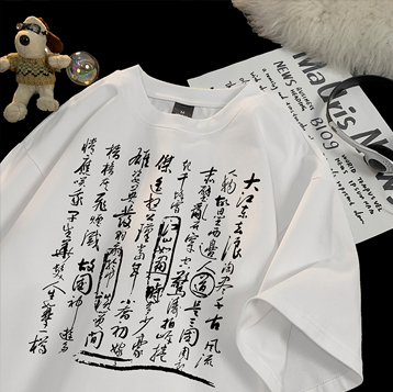 新中式国风书法短袖t恤男夏季白色宽松重磅衣服潮牌纯棉半袖体恤,书法艺术T恤装。包邮!