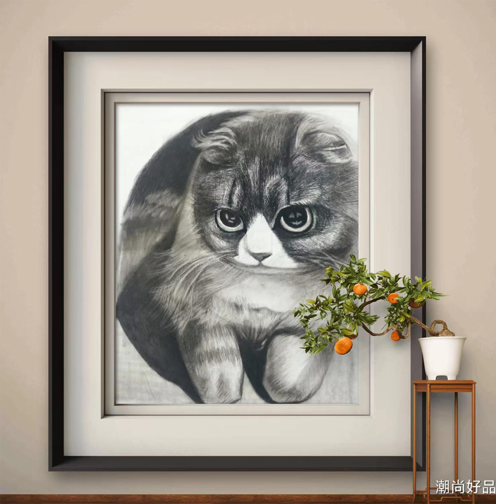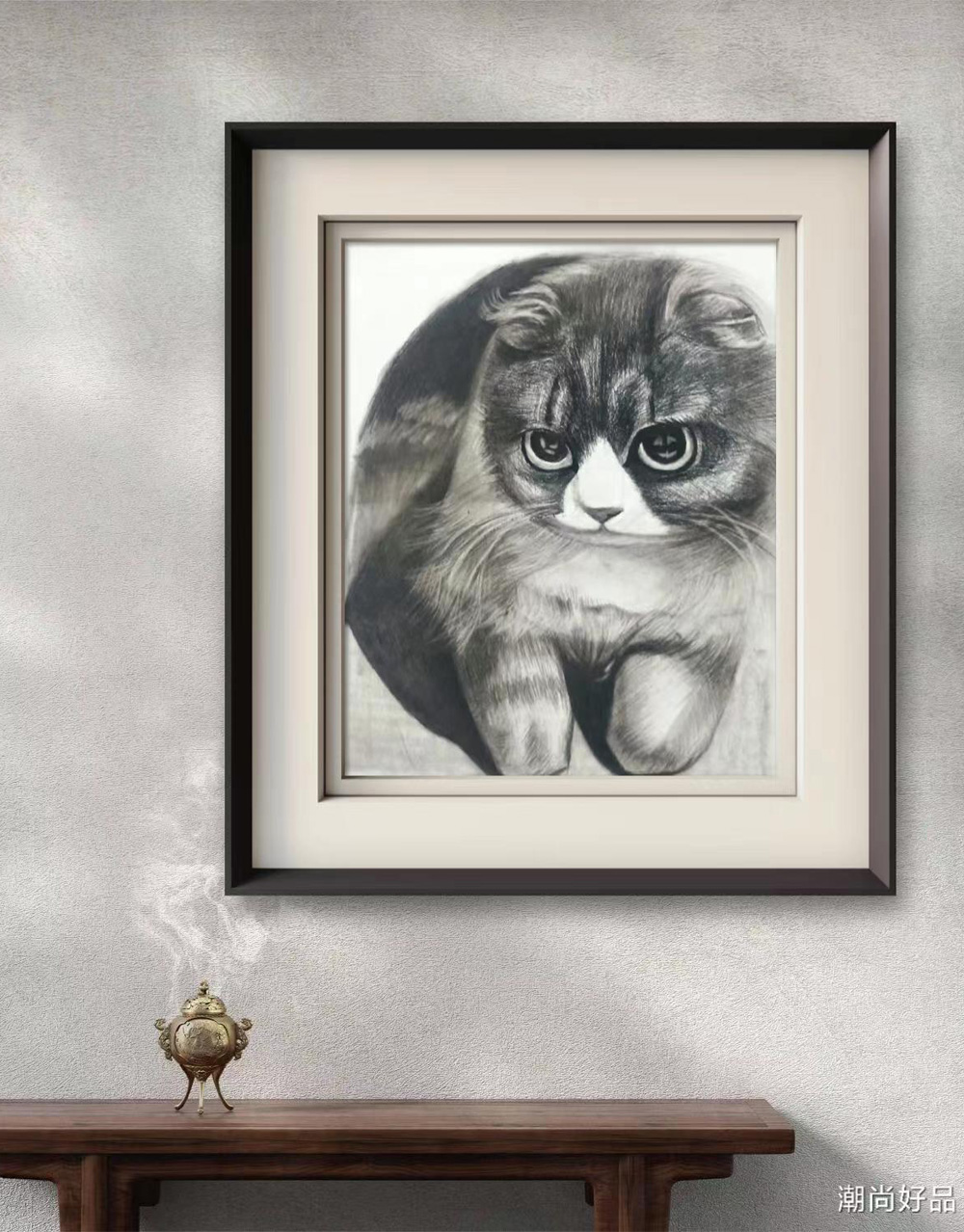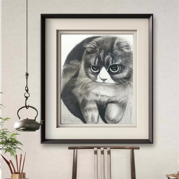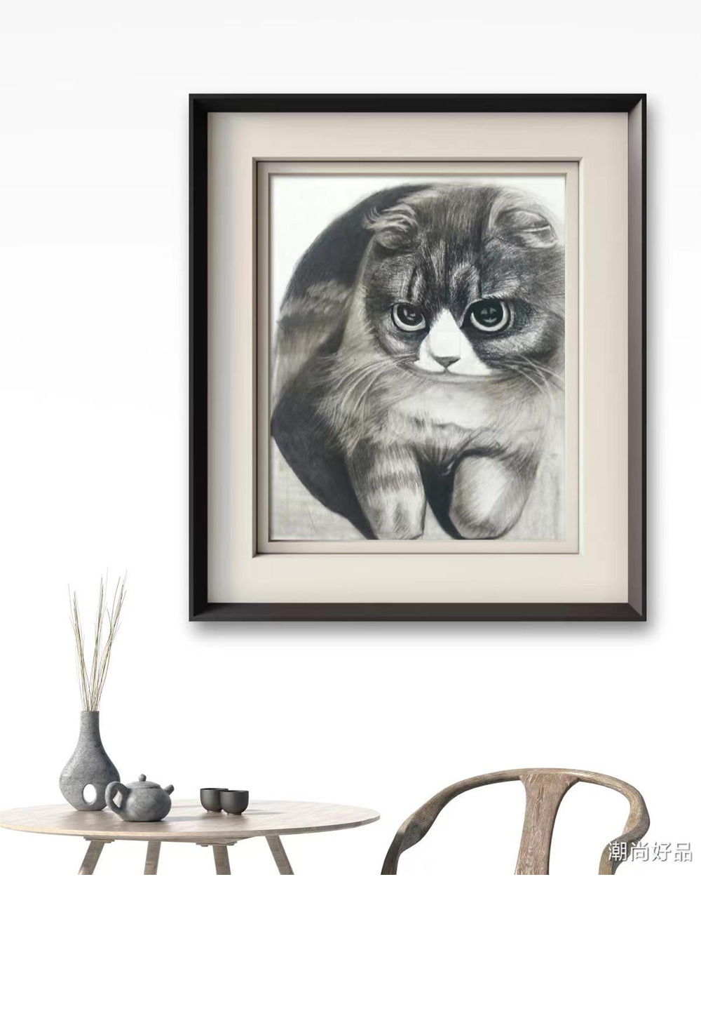 素描_小猫咪,此作品未装裱,若需装裱请下单说明,需收取装裱费用,发货时间为72小时之内。另外凡是需要装裱的需要收取邮费打包费用。支持预售!(发货时间为7天后)。