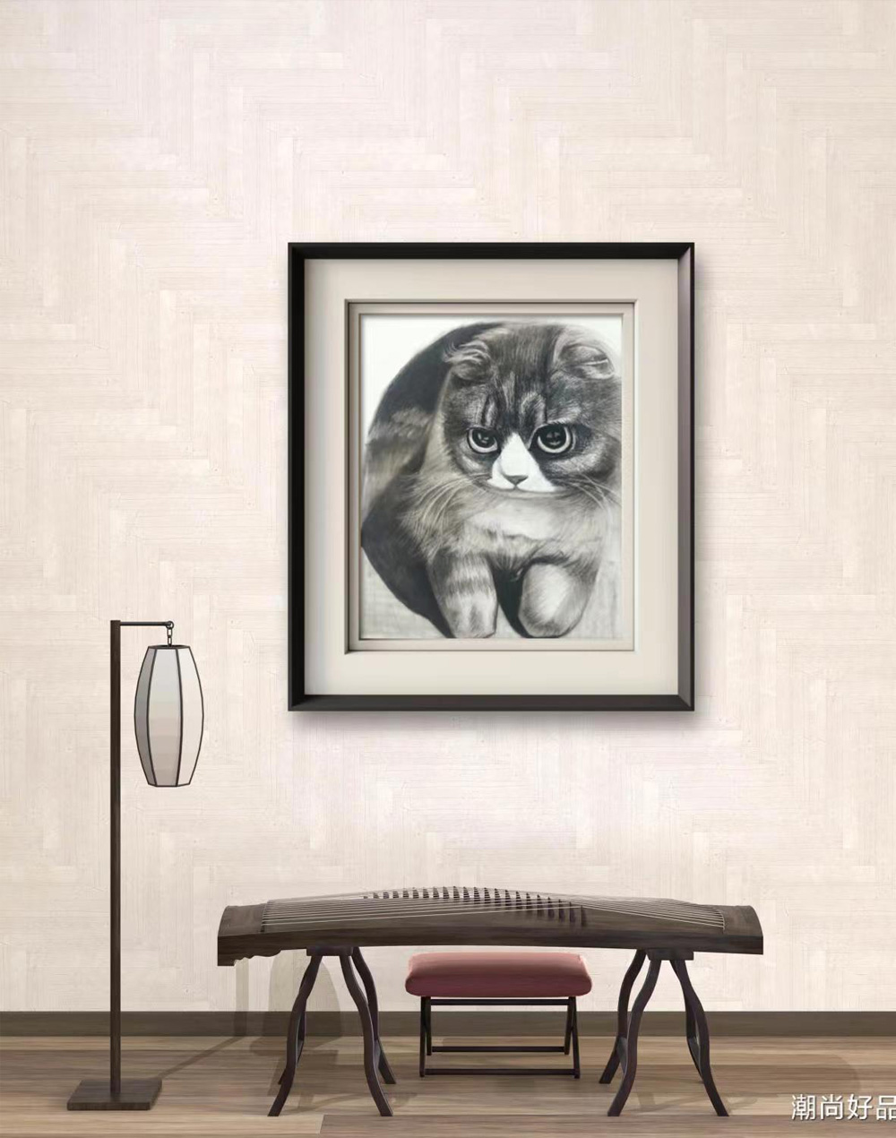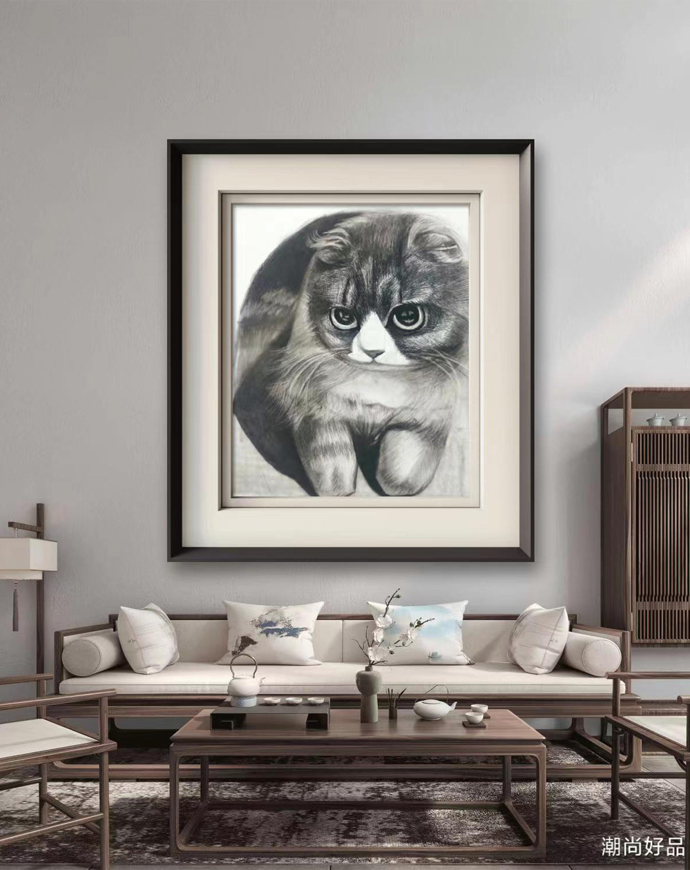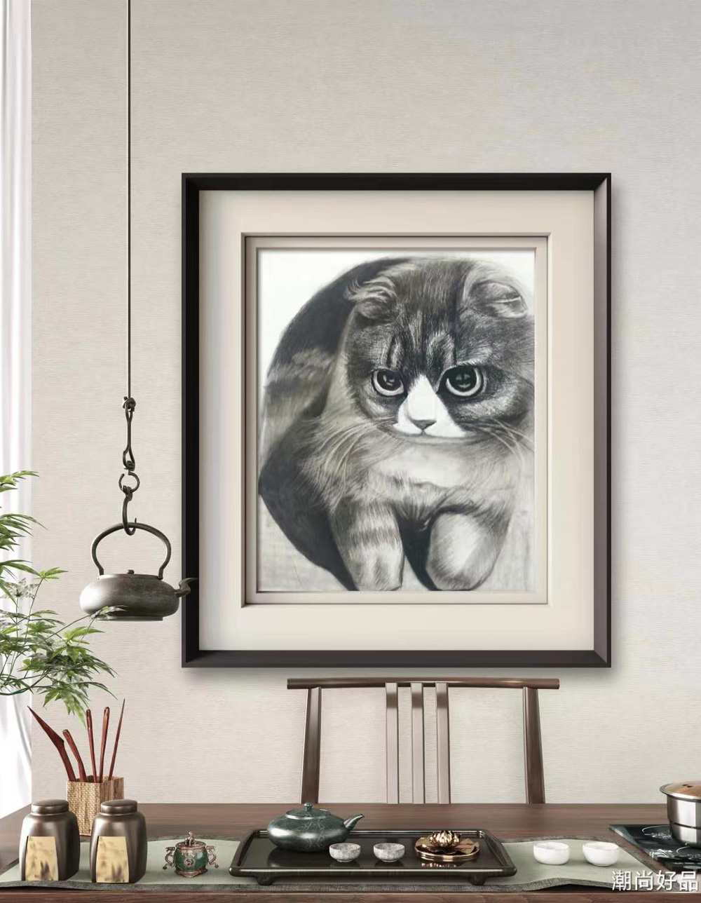 素描_小猫咪,此作品未装裱,若需装裱请下单说明,需收取装裱费用,发货时间为72小时之内。另外凡是需要装裱的需要收取邮费打包费用。支持预售!(发货时间为7天后)。