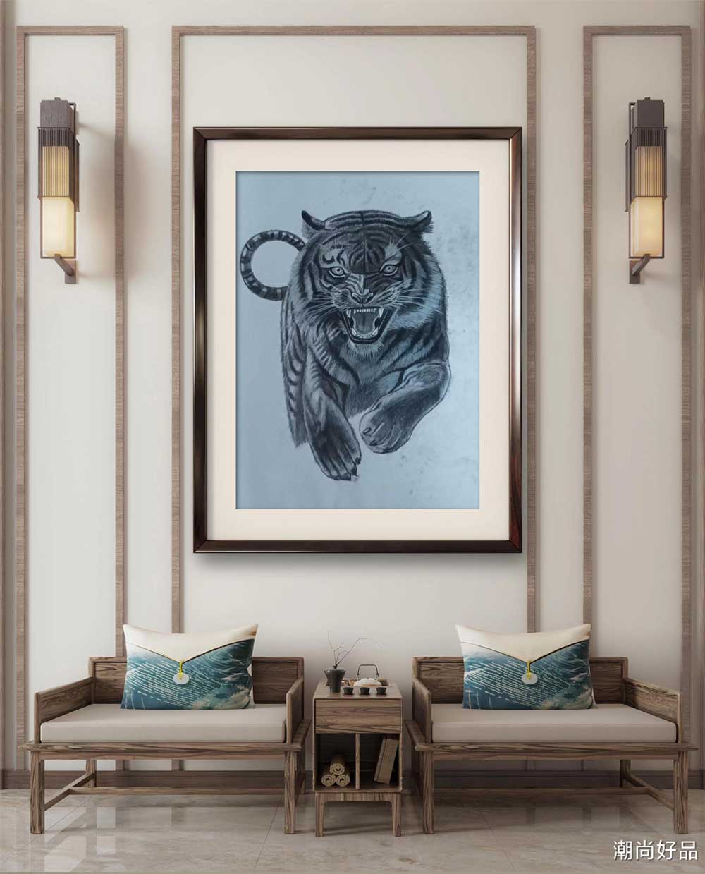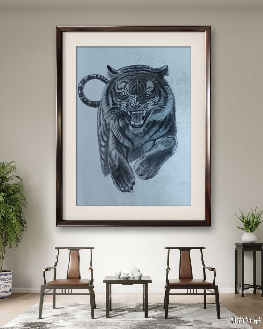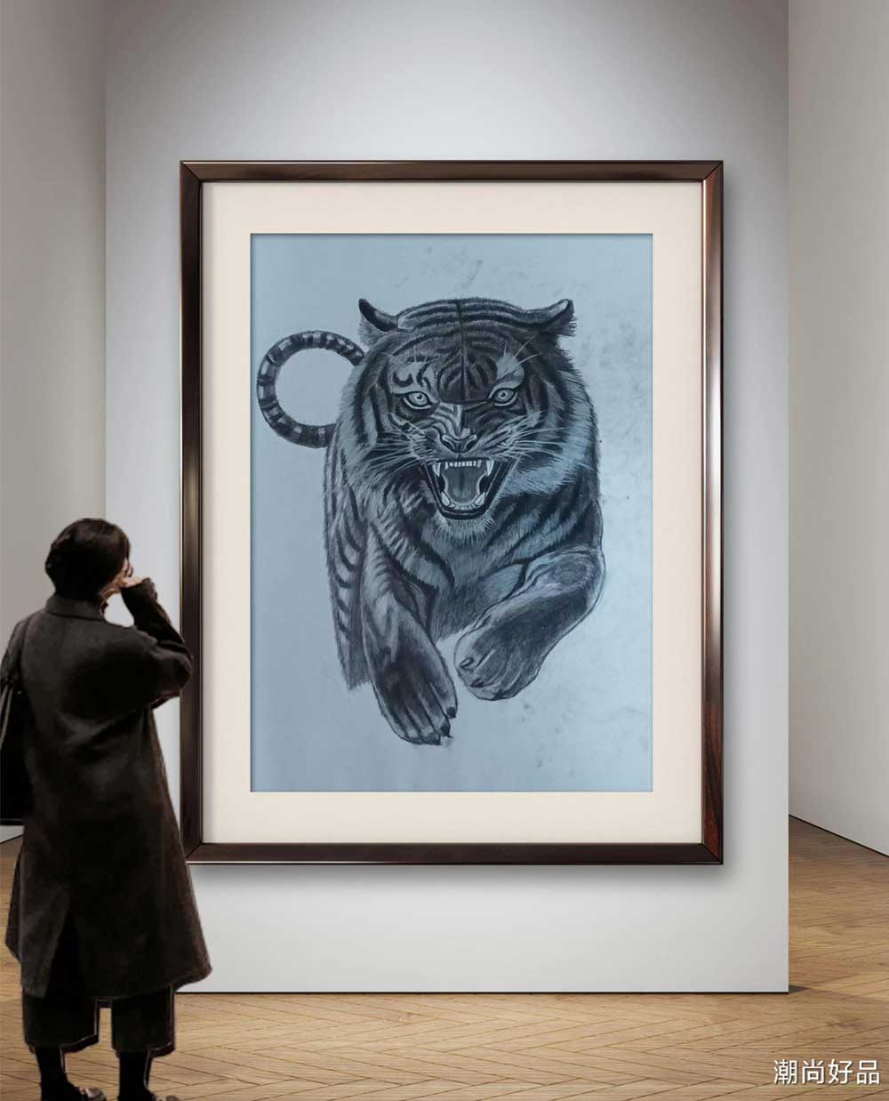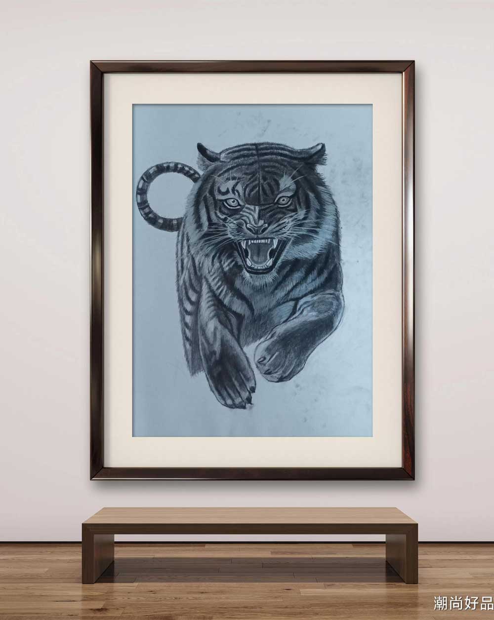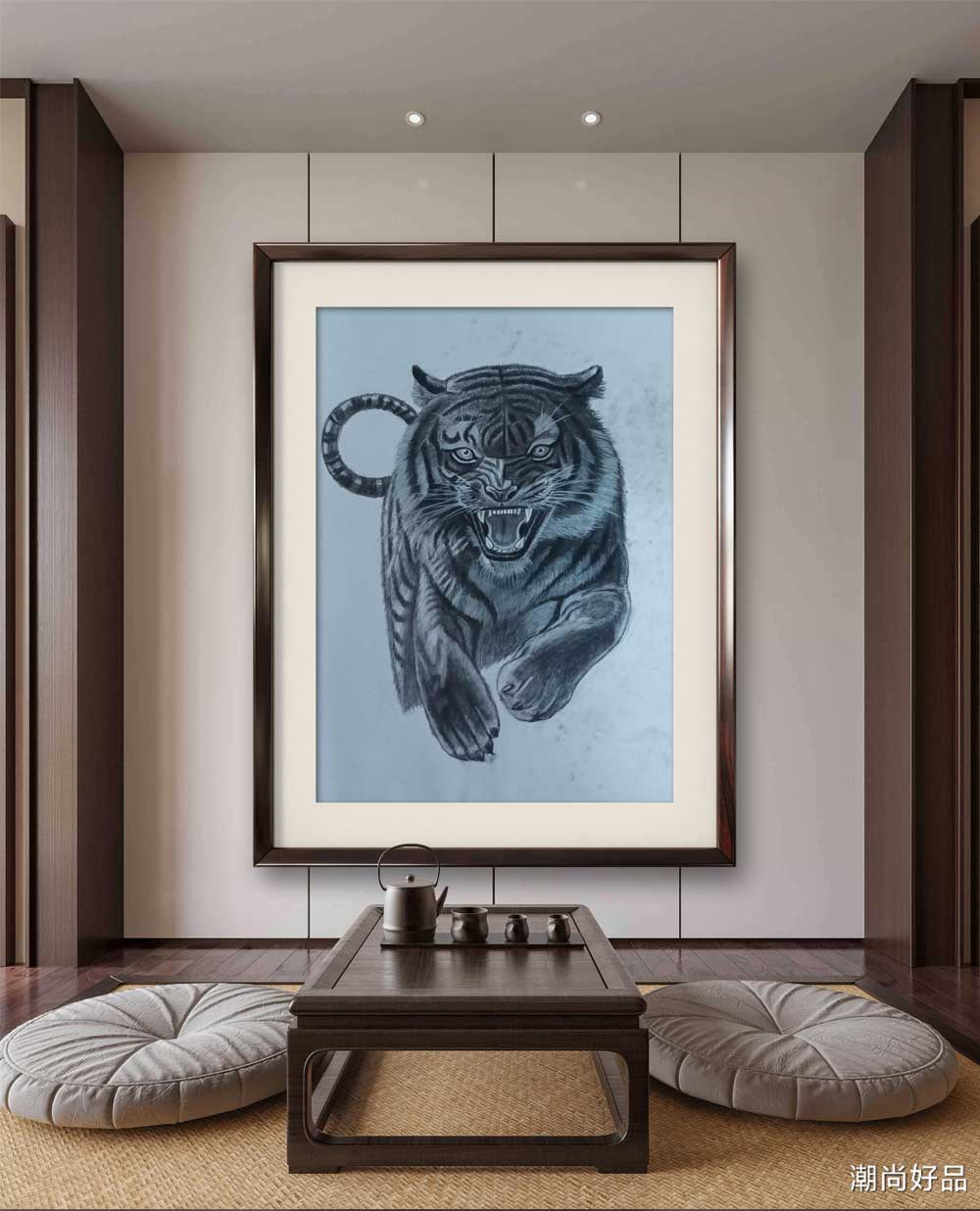 素描_老虎,此作品未装裱,若需装裱请下单说明,需收取装裱费用,发货时间为72小时之内。另外凡是需要装裱的需要收取邮费打包费用。支持预售!(发货时间为7天后)。